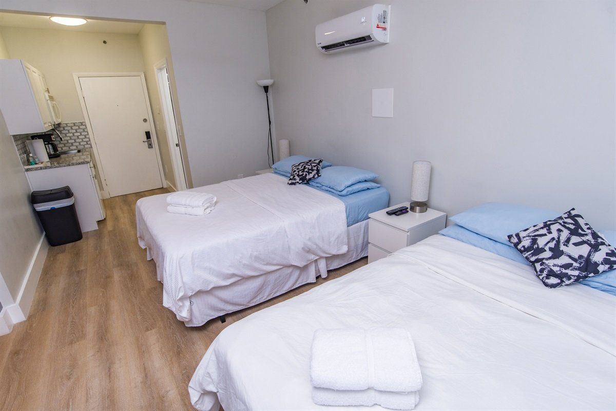 Ocean Living! Steps to the most beautiful beaches in the world. Enjoy this sparkling clean, newly renovated unit- 3 easy blocks to the beach. Blocks to the desirable South Of Fifth area. This suite offers so much value- a private and quiet accommodation for vacationers and business travelers. The unit features a comfortable queen bed, full closet, hangers, a smart TV, strong WiFI. This boutique hotel also has a large solarium area to sunbath, or to get work done with fresh ocean air.